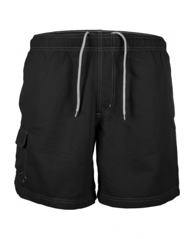 100% polyester microfiber. Quick dry peached fabric. Elasticated waist with inner drawcord. Meshed inner brief. 2 side pockets + 1 side pocket with flap and eyelet. Contrast topstich.