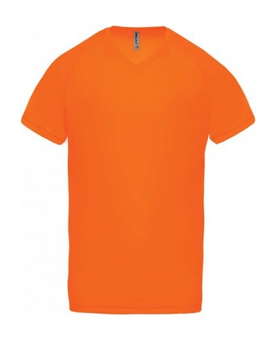 100 % polyester. Quick-drying fabric. Taped V-neck. Raglan sleeves with cover stitch. Twin needle finishing on cuffs and hem.