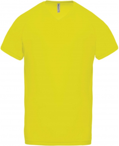 100 % polyester. Quick-drying fabric. Taped V-neck. Raglan sleeves with cover stitch. Twin needle finishing on cuffs and hem.
