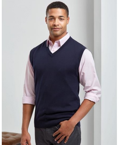 he perfect pull-over to complete your look, this cotton-rich sleeveless knitted sweater has contemporary styling with rib knit arm holes and hem to help retain shape. Wear this with a collar and tie for a professional and smart approach to your working day.