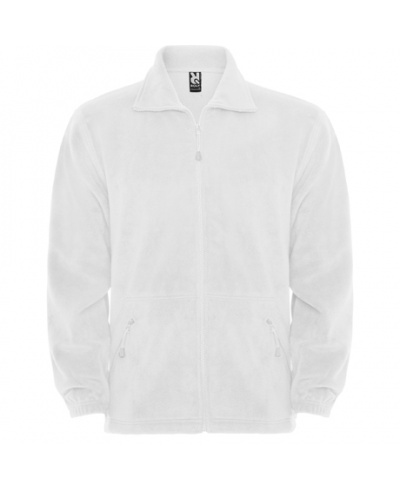 Fleece jacket, with high necked lined collar and matching full zipper. Side pocket with zipper, elastic cuffs and waist with side adjusters.
