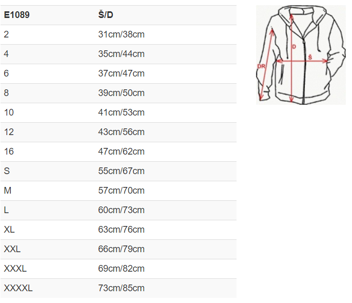 *Size 4XL available in: colours black 02, lead 23, red 60, navy blue 55, royal 05 and bottle green 56.