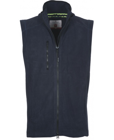 Men’s fleece vest, plastic zip with double pull, raglan fit, two front pockets with concealed zip and a breast zip pocket