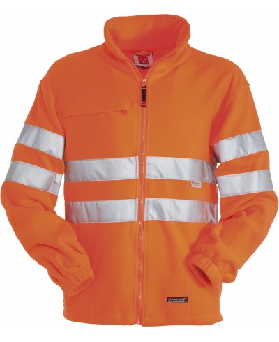 Men’s high-visibility fleece with 3M stripes, with plastic zip, adjustable drawstring at the waist, elasticated cuffs, two pockets with concealed zip, one front zip pocket, reinforced seams