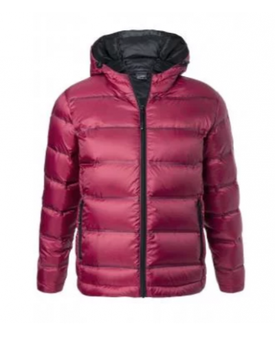 Hooded down jacket in new design, Back-stitching of the jacket is taped, not sewn