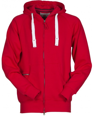 Men’s hoodie with full, plastic-covered SBS zip with double metal pull, hood with double stitched seams and white drawstring with contrasting stitching and metal rings, raglan sleeves, kangaroo pockets, small zip pocket, stretch rib cuffs and hem, reinforced seams