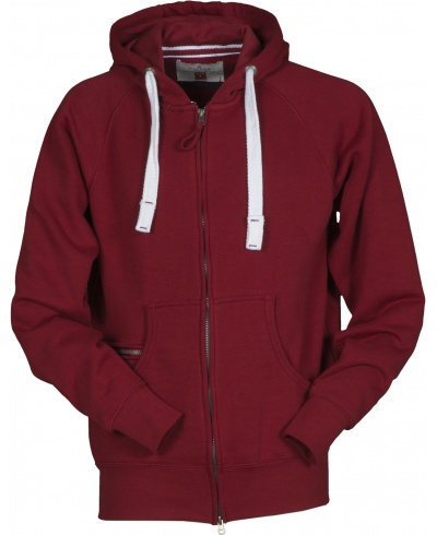 Men’s hoodie with full, plastic-covered SBS zip with double metal pull, hood with double stitched seams and white drawstring with contrasting stitching and metal rings, raglan sleeves, kangaroo pockets, small zip pocket, stretch rib cuffs and hem, reinforced seams