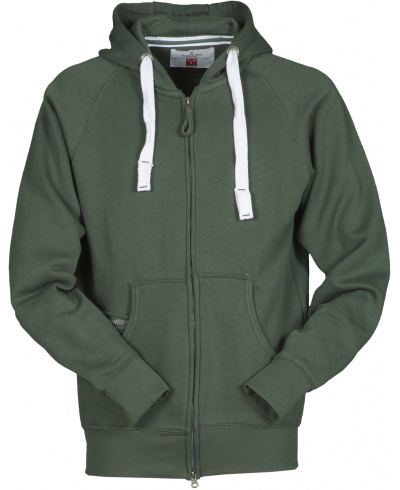 Men’s hoodie with full, plastic-covered SBS zip with double metal pull, hood with double stitched seams and white drawstring with contrasting stitching and metal rings, raglan sleeves, kangaroo pockets, small zip pocket, stretch rib cuffs and hem, reinforced seams
