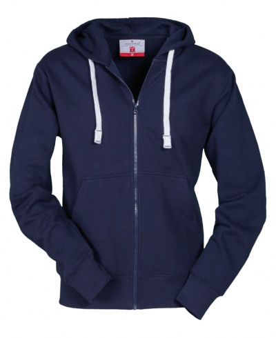 Men’s hoodie with full zip and matching colour hood, kangaroo pockets, reinforced seams, stretch rib cuffs and hem. Matching inner neck tape