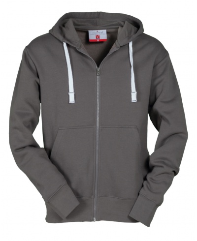 Men’s hoodie with full zip and matching colour hood, kangaroo pockets, reinforced seams, stretch rib cuffs and hem. Matching inner neck tape