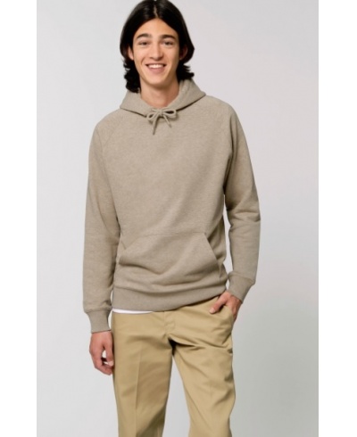 Weight: 350 gsm; Material: 85% ORGANIC RING-SPUN COMBED COTTON, 15% RECYCLED POLYESTER; Raglan sleeve, Double layered hood in self fabric, Round drawcords in matching body colour with metal tipping, Embroiderd buttonhole eyelets, Inside herringbone back neck tape, Single needle topstitch at neckline, Self fabric half moon at back neck, 1x1 rib at sleeve hem and bottom hem with twin needle topstitch, Kangaroo pocket with wide double topstitch