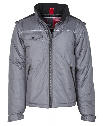 Men’s winter jacket with contoured back, zip, two roomy outer pockets with zip, roomy breast pocket for smartphone, badge holder ring, reflex piping on the chest and shoulders; padded, high-density lining, fleece inside collar, one inner pocket
