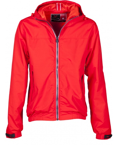 Men’s lightweight jacket with 8 mm contrasting zip, shaped hood with two seams and drawstring, elasticated waist, elasticated and adjustable cuffs, two outer pockets with concealed zip. Unpadded, mesh lining, one inner zip pocket with opening for smartphone headphones, zip on the back and chest for easier printing and embroidery