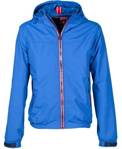 Men’s lightweight jacket with 8 mm contrasting zip, shaped hood with two seams and drawstring, elasticated waist, elasticated and adjustable cuffs, two outer pockets with concealed zip. Unpadded, mesh lining, one inner zip pocket with opening for smartphone headphones, zip on the back and chest for easier printing and embroidery