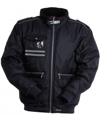 Men’s casual lightweight jacket, close fitting, plastic zip with metal pull, foldaway hood, rib hem and cuffs, shoulder tabs and zip-up collar, two LOCK SYSTEM pockets, two pockets with zip, one reversible badge holder pocket, reflex piping on the shoulders and two reflective stripes on the chest and back. Padded, high-density, silver coloured lining, micro-fleece back, fleece inside collar, one inner pocket