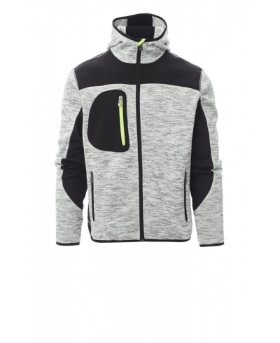 Men’s comfort-fit jacket, long taped SBS zip, shaped hood with double stitched seams, thin-edge cuffs and hem, two side pockets with zip, one breast pocket; knit detail with inserts in black softshell