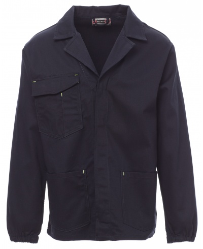 Open-collar jacket, elastic cuffs, concealed button closure, two patch pockets and a chest pocket with smartphone holder, badge holder, pen holder and closure flap with Velcro