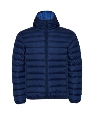 Men´s quilted jacket feathery to the touch with fitted hood.