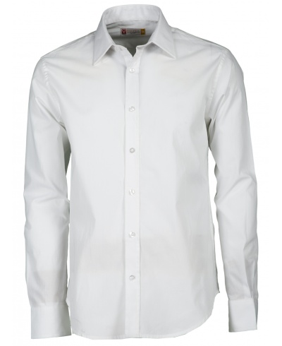 Sleeved shirt, slightly tailored, Italian-style collar, tailored cuff with 2 buttons and button hole, stitched placket with matching buttons, one breast pocket. Back with yoke and darts, easy-care fabric