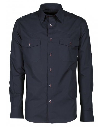 Men’s fine weave combed shirt, slightly tailored, Italian-style collar, tailored cuff with 2 buttons and button hole, stitched placket with matching buttons and red buttonholes (apart from the white version), shaped yoke at the front (apart from the white version), shoulder tabs, two breast pockets with flap, roll up sleeves with button and tab