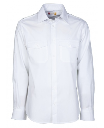 Men’s fine weave combed shirt, slightly tailored, Italian-style collar, tailored cuff with 2 buttons and button hole, stitched placket with matching buttons and red buttonholes (apart from the white version), shaped yoke at the front (apart from the white version), shoulder tabs, two breast pockets with flap, roll up sleeves with button and tab