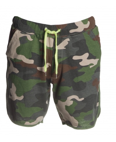 Men’s sweatpant Bermuda shorts with stretch waist and drawstring, fly with zip, two front pockets and contrasting trim