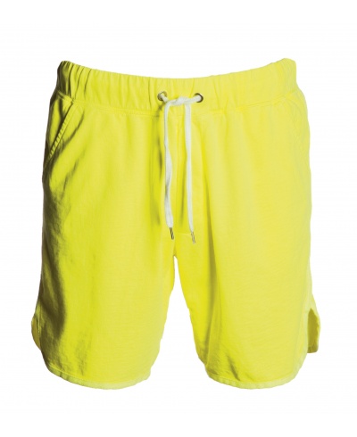 Men’s sweatpant Bermuda shorts with stretch waist and drawstring, fly with zip, two front pockets and contrasting trim
