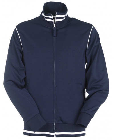Men’s sweatshirt with full, contrasting plastic-covered zip with double metal pull; rib collar and hem with contrasting trim, stretch rib cuffs, cuff piping, two side pockets with zip, reinforced seams, pique type fabric for greater breathability