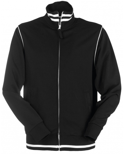 Men’s sweatshirt with full, contrasting plastic-covered zip with double metal pull; rib collar and hem with contrasting trim, stretch rib cuffs, cuff piping, two side pockets with zip, reinforced seams, pique type fabric for greater breathability