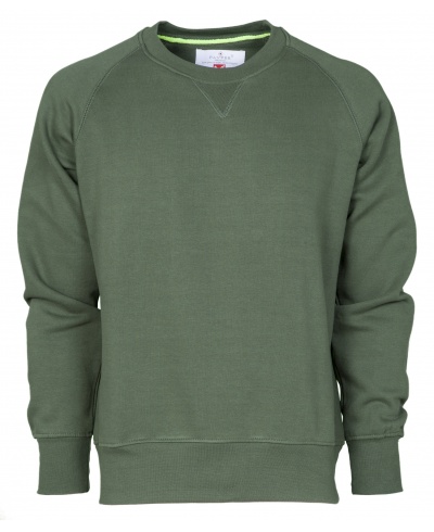 Men’s crew neck sweatshirt, with raglan sleeves, V-design neck stitching; stretch rib cuffs and hem, reinforced seams