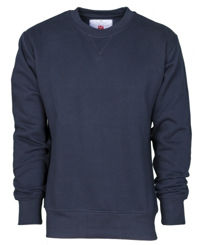 Men’s crew neck sweatshirt, V-design neck stitching, fitted sleeves, stretch rib cuffs and hem, reinforced seams