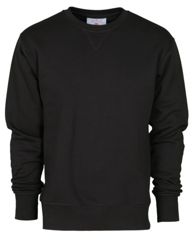 Men’s crew neck sweatshirt, V-design neck stitching, fitted sleeves, stretch rib cuffs and hem, reinforced seams