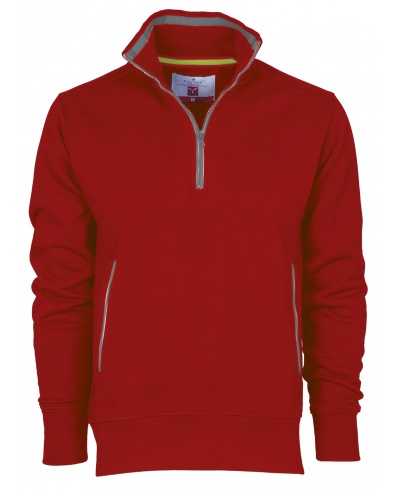 Sweatshirt with half zip in contrasting coloured plastic with metal pull, contrasting trim on the collar and side pockets; stretch rib collar, cuffs and hem, reinforced seams