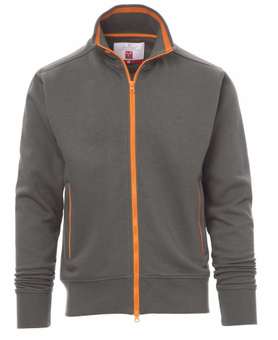 Men’s sweatshirt with full, contrasting coloured plastic SBS zip with double metal pull; rib collar with contrasting trim, side pockets with contrasting trim, fitted sleeves, two outer pockets with contrasting zip, stretch rib cuffs and hem, reinforced seams
