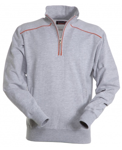Sweatshirt with half zip in plastic with metal pull, contrasting trim on the shoulders, zip edge and back; two zip pockets, stretch rib cuffs and hem