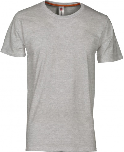 Men’s short-sleeved crew neck t-shirt, with 1.5 cm spandex mix rib neckband with top stitching on the front, contrasting shoulder-to-shoulder reinforcement tape visible on the inside collar, stretch seams, tubular design