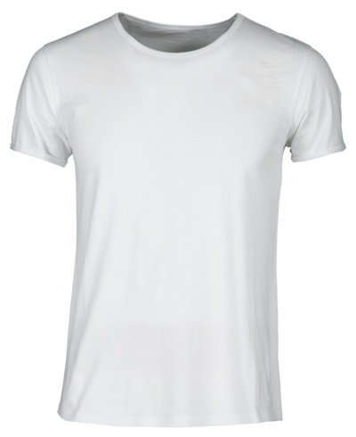 Men’s short-sleeved t-shirt with slightly scooped neck, with narrow edge neckband, sleeves with narrow turn-up, side seams, no label