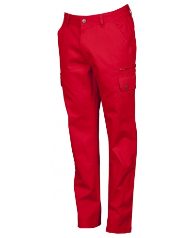 Men’s all-season trousers with side elastic and waist belt loops. Zip fastening with metal button, two front pockets, two side pockets with flaps and snap fasteners, one left zip pocket, one foldaway tape measure pocket on the right, two slit back pockets with button and buttonhole