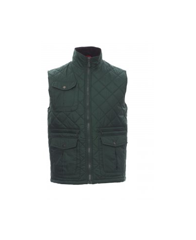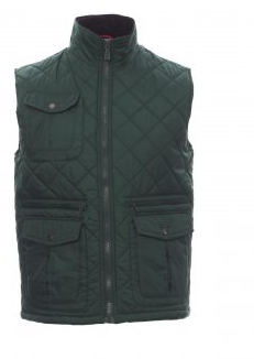 Men’s quilted vest, 8 mm plastic zip with metal pull, side vents with button, five outer pockets, two with LOCK SYSTEM. Padded, corduroy rib inside collar, one inner pocket
