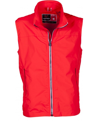 Men’s vest, 8 mm contrasting zip, two outer pockets with concealed zip. Unpadded, mesh lining, one inner zip pocket with opening for smartphone headphones, zip on the chest and bottom for easier printing and embroidery