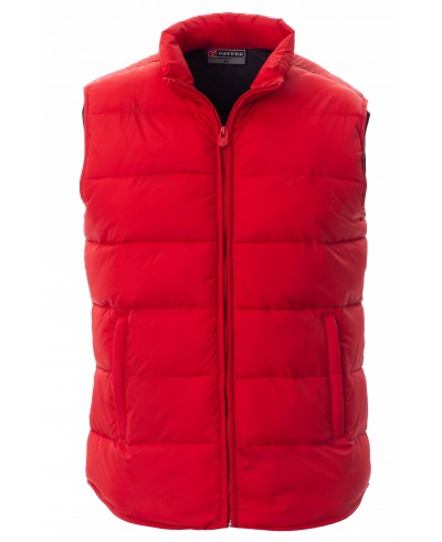 Men’s vest in feather-effect padded polyester, concealed plastic zip, two external pockets with concealed zips, interior in contrasting colour