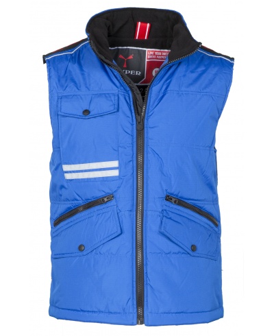 Men’s fitted vest, zip, two LOCK SYSTEM outer pockets, two pockets with zip, slanting pockets for easier access, one smartphone breast pocket and badge holder ring, reflective stripes on the pocket and back; padded, contrasting fleece lining on the back and collar, one inner pocket, zip for easier printing and embroidery