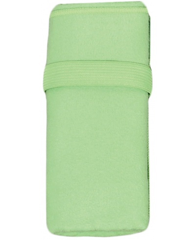 85 % polyester / 15 % polyamide. Ultra-light for quick and efficient drying. Overlock finish and attached matching elastic band for easy folding and carrying.