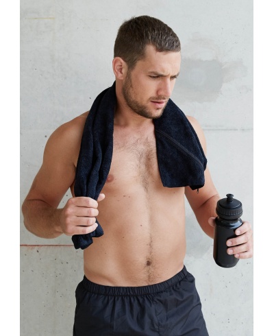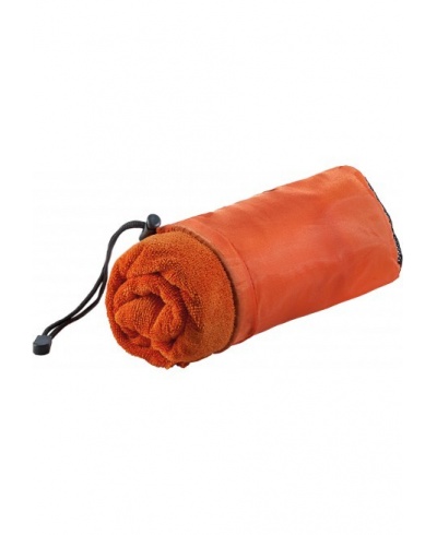 80% polyester / 20% polyamide. Light weight towel for ultra-fast drying. Overlocked seams. Contrast zipped pocket at lower corner. Polyamide color coordinated carry pouch with elasticated drawstring and meshed bottom for ventilation (color Soft Blue: pocket in contrasting Navy). Pocket size: 25 cm. Size: 100 x 50 cm