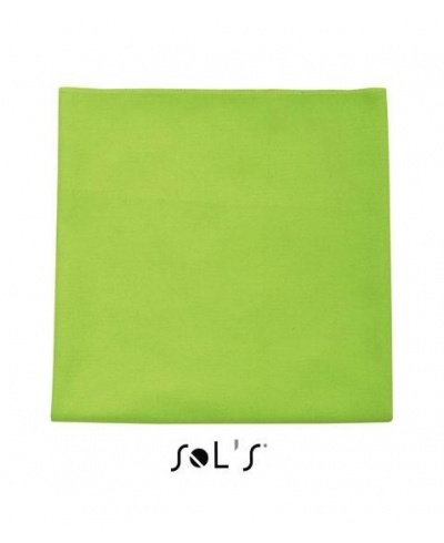 QUALITY: 90% microfibre polyester, 10% polyamide; Overlock finishing, Tone-on-tone stitched elastic band to fold the towel; Size: 70 x 120 cm