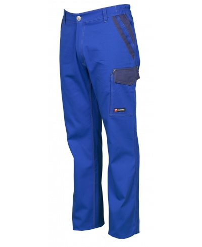 Multi-season unisex trousers with side elastic and waist belt loops. Zip fastening with metal button, two classic front pockets and a zip pocket, a LOCK SYSTEM side pocket, a double tape measure pocket on the left side, two back pockets, one open and one with flap and Velcro. Contrasting inserts and stitching, reflex stripes on the back pocket, triple seams on the inner leg