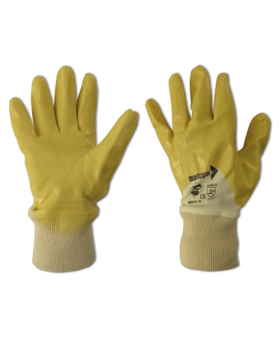 NBR gloves, ventilated back, knit cuff, 24 G interlock cotton, sanitised; Features: sturdy, very resistant; Strengths: fit, grip, protection, resistant to liquids, practical; Areas of application: heavy-duty handling, metals, sharp and abrasive materials, oil, grease, dirt, hydrocarbons, lubricants