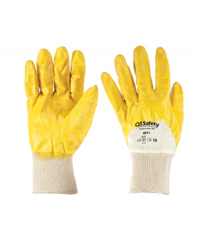 NBR rubber gloves, ventilated back, knitted cuff, Interlock 24 G cotton; Features: sturdy, very resistant; Strengths: fit, grip, protection, resistant to liquids, practical; Areas of application: heavy-duty handling, metals, sharp and abrasive materials, oil, grease, dirt, hydrocarbons, lubricants