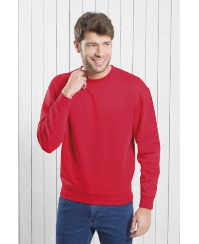 Unisex Sweatshirt. Double stitch on collar, sleeves and bottom. Lycra rib on collar, cuffs and bottom.