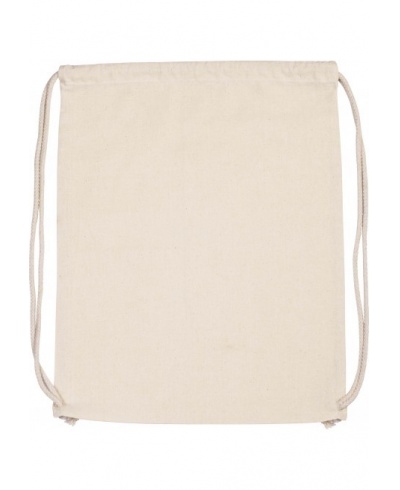 Organic cotton backpack 150 gsm. Slide fastening with thick drawstring.